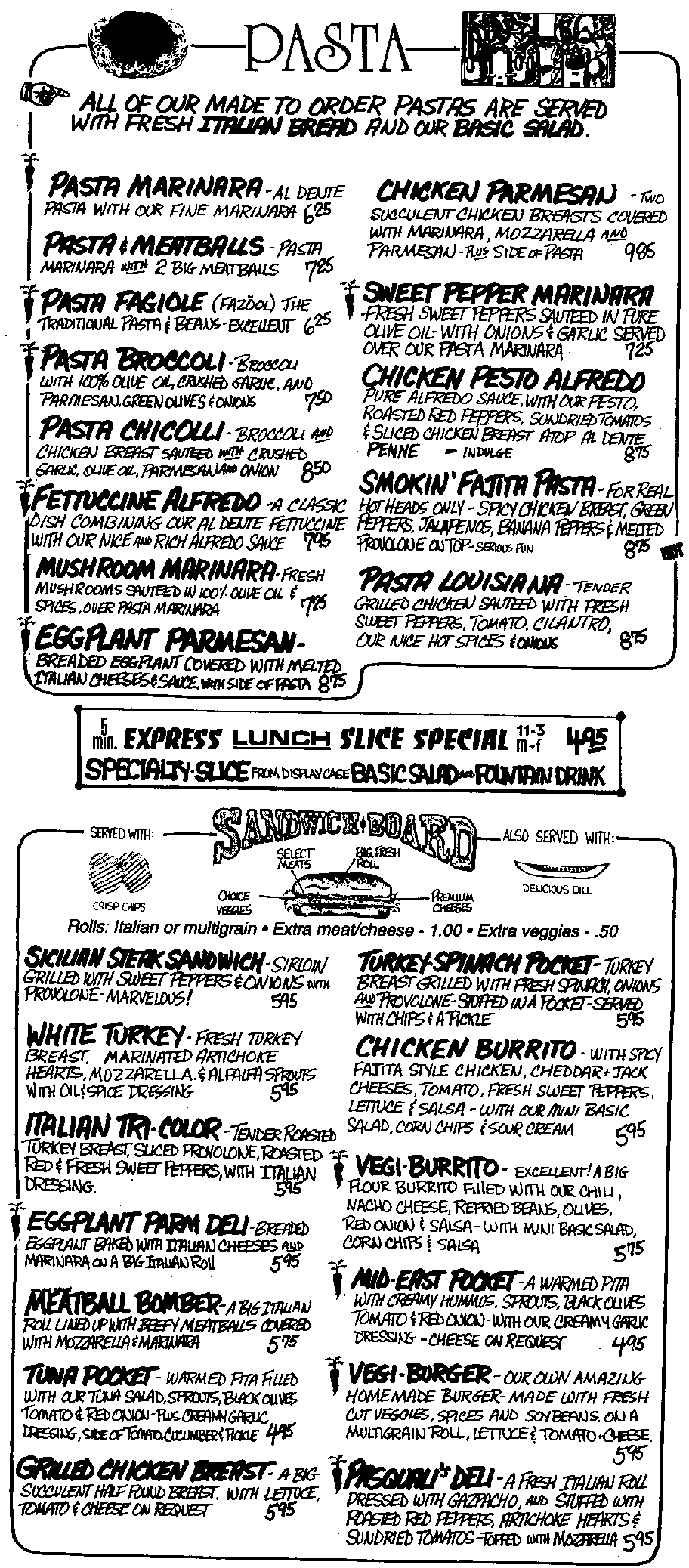 Note: This is menu from mid 1996.